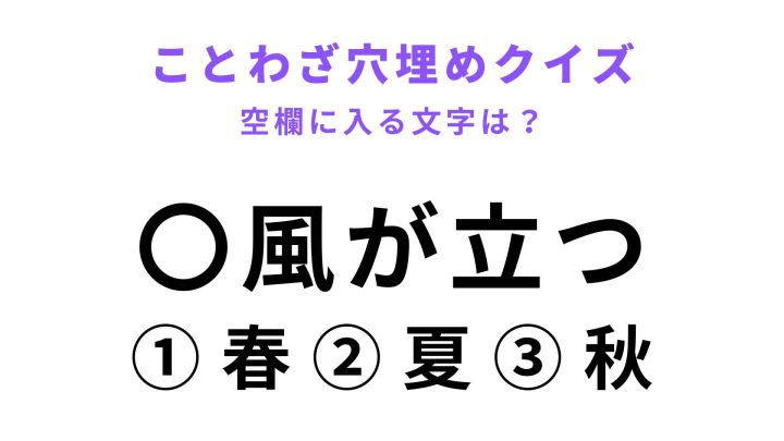 「〇風が立つ」の空欄に文字を入れると、あることわざが完成します。