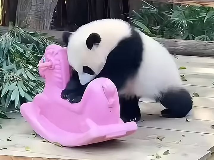 元気いっぱいの子パンダさん、張り切りすぎてコロンと