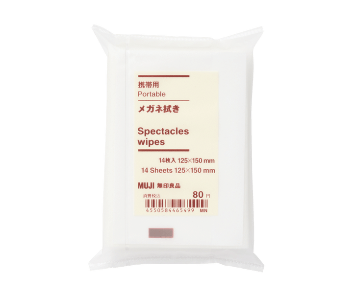 メガネやスマホの画面の汚れをしっかり落としてくれる柔らかな不織布製メガネ拭き。14枚入り¥80(無印良品 銀座)