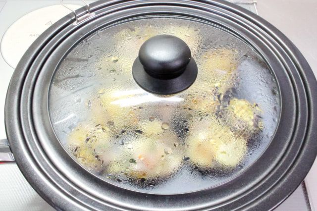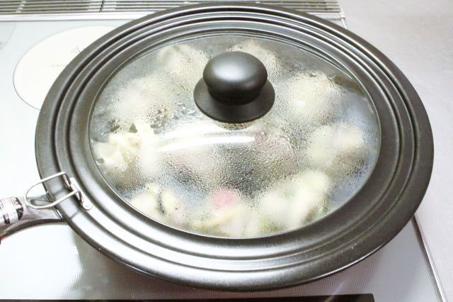 4. サラダ油を回しかけてフタをして弱めの中火で熱し、4~5分蒸し焼きにします。