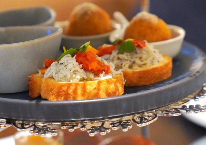 パクッと食べやすいトリュフのアランチーニやコンフィなど、お酒のおつまみにもぴったりなメニュー。たっぷりのしらすが乗ったブルスケッタは見た目も食べ応えも抜群!