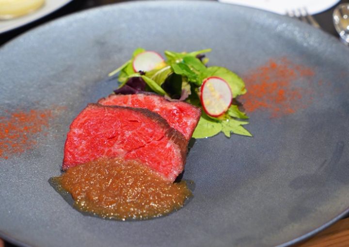 メインディッシュは国産牛ステーキ。脂の少ないしっとりした赤身のお肉は、たまねぎベースのシャリアピンソースと相性バッチリ。メインは1人1皿提供されるので、お腹いっぱい食べたいガールも大満足のボリュームです。