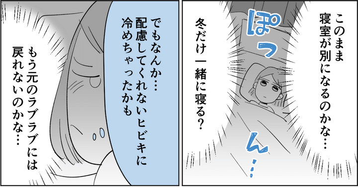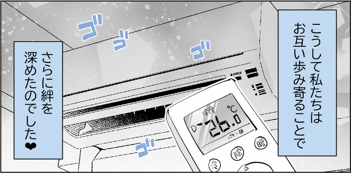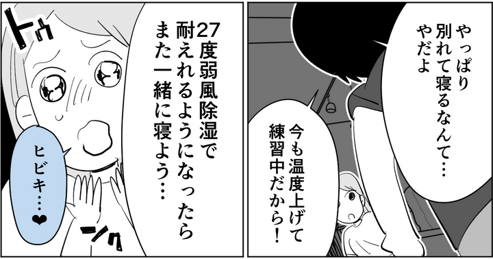 <新婚!エアコン攻防戦>ひとりで寝るのは寂しい!「練習する」夫の歩み寄りに…キュン【まんが】