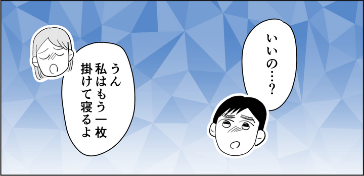 私はハル(25歳)。ヒビキ(26歳)と半年前に結婚をして、ラブラブに過ごしていました。ついこの間までは。暑い時期に差し掛かり、2人の部屋の適温が異なると私たちの愛はあっという間に冷めていってしまったのです。ヒビキはとにかく部屋を冷やしたくて、私は寒がりなのでまだエアコンはつけたくありません。それでもヒビキのために「27度+弱風+除湿」というエアコンの設定で妥協したのに、ヒビキはそれでも暑いらしく、結局今は寝室をわけることになったのです。私はお互いの愛が冷めていくのを感じました。