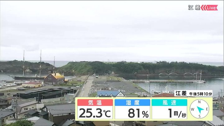 背景は6日午後5時ごろの江差情報カメラ