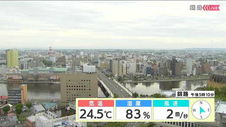 背景は6日午後5時ごろの釧路情報カメラ