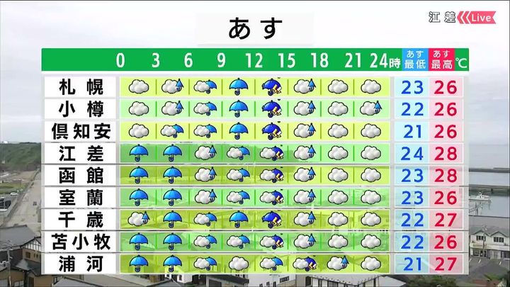 ・あすの札幌の朝昼晩の天気