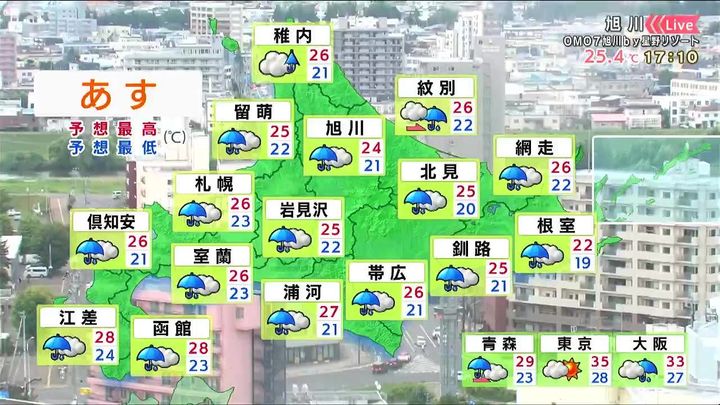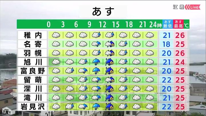 旭川もあす7日(木)は雨ですね。