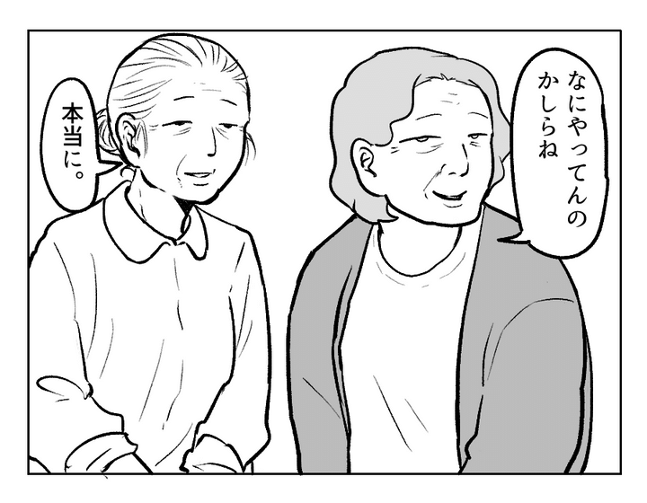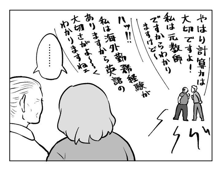 マウントを取り合っているのは両家のおじいちゃんたちだけ。おばあちゃん同士、ママさん同士は気が合うようですし、孫同士も仲良しです。だから他の家族は2人のやり取りを生暖かい目で見ていたのですが……。