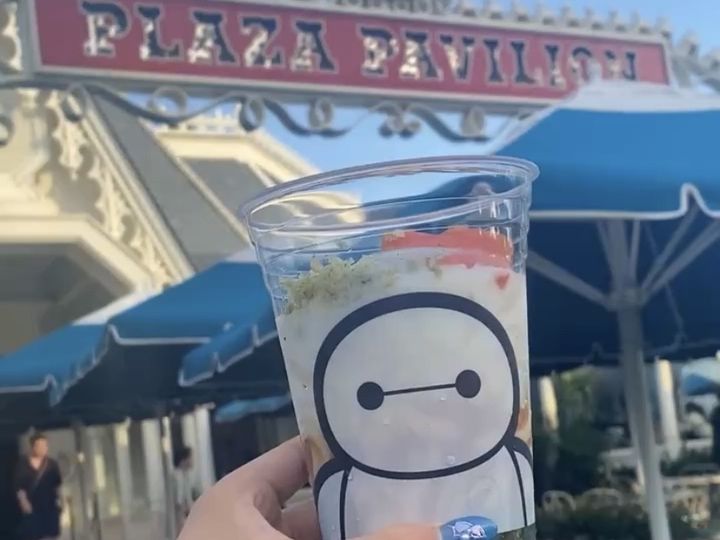 プラザパビリオン・レストランの席で食べることもできますが、カップに入っているので店舗外への持ち出しも楽ちん。パレードを待ちながら食べることもできますよ。