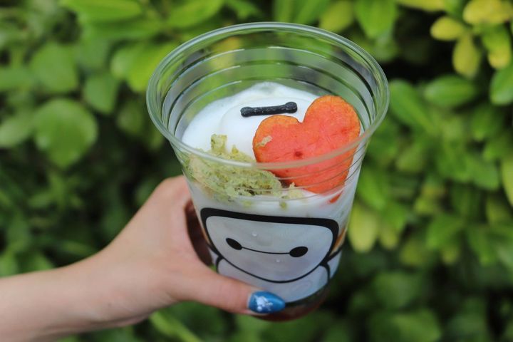 具材もたっぷりで、豆乳ポテトのソースにベイマックスモチーフの半熟タマゴ、底の方にはピリ辛の牛カルビまで、混ぜるのが大変なほどカップにぎっしり詰まっています。味はもちろん、お腹の満足感もパーフェクト!