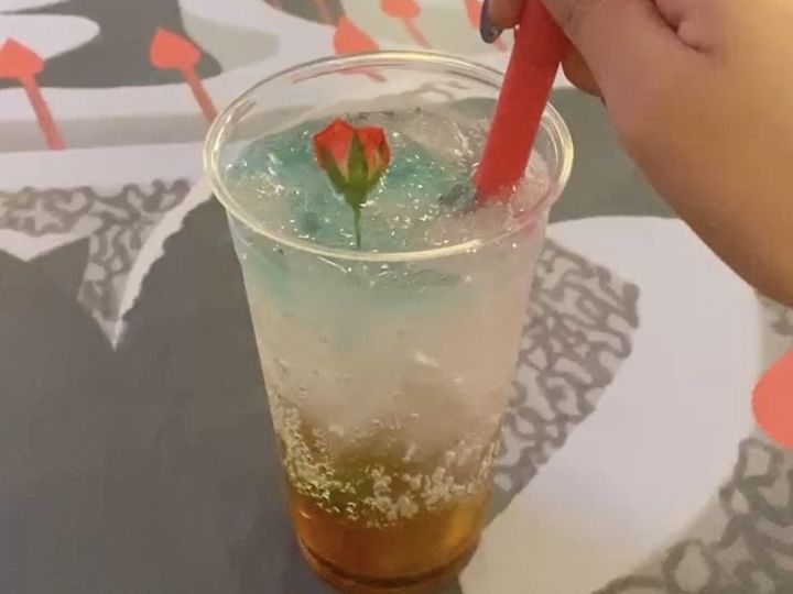 シェイブアイスと一緒に味わったのは、「スパークリングドリンク(ティー&ローズ)」700円。