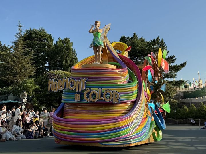 「朝から入園しないと、昼間に公演するショーやパレードは見られないんじゃない??」と思っていたのですが、夏の暑い時期は日中のパレード「ディズニー・ハーモニー・イン・カラー」が17時台(2025年8月24日までは17時15分、25~31日は17時)に実施。15時から入園しても十分鑑賞できます!