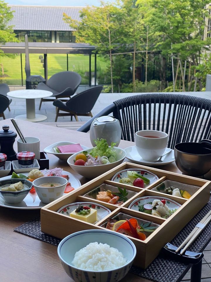 Well-being Breakfast 6,900円(税・サービス料込)。テラス席であれば、オープンエアな空間で西山を望みながら朝食をいただくことができます。 出典: 美人百花.com