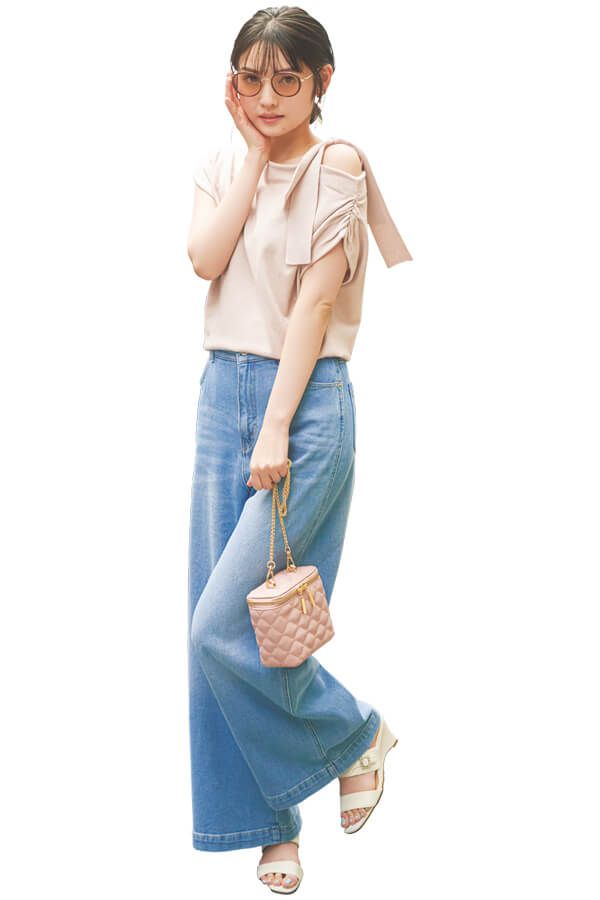 サングラス¥8,000/OWNDAYS ニット¥12,100/Noëla パンツ¥6,490/ロペピクニック(ジュン カスタマーセンター) イヤリング¥9,900/イットアトリエ(14 SHOWROOM) バッグ¥9,900/RESEXXY 靴¥15,400/WASHINGTON(銀座ワシントン銀座本店)