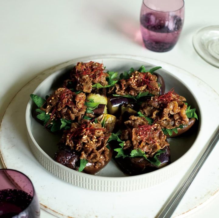 蒸し焼きでジューシーに仕上げたなすと、みんな大好き韓国風牛肉炒めのコラボ。取り分けもしやすいからホームパーティでも大活躍しますよ。