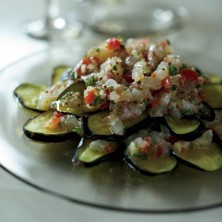 お酒とも好相性!風味豊かな『なすと白身魚のカルパッチョ』