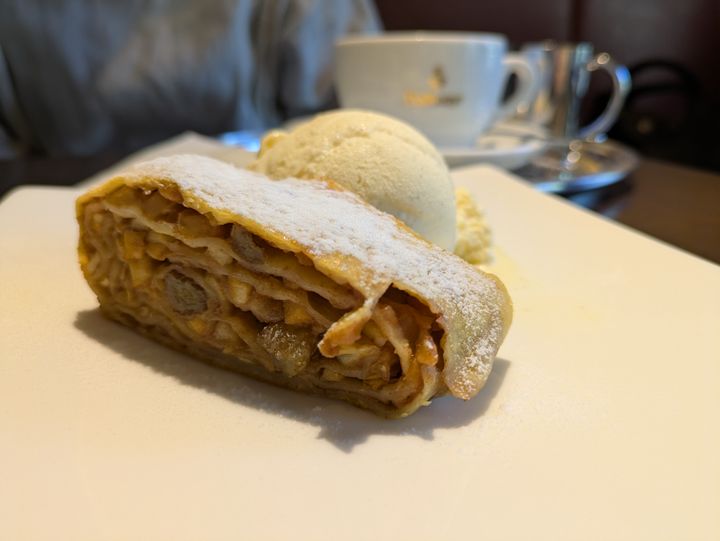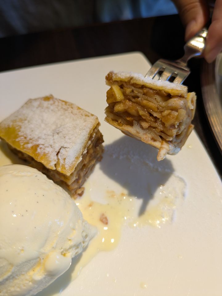 シュトゥルーデルがクレープとパンの間のようなむちっとした歯切れのいい食感の生地で、他にはない味わいでした。