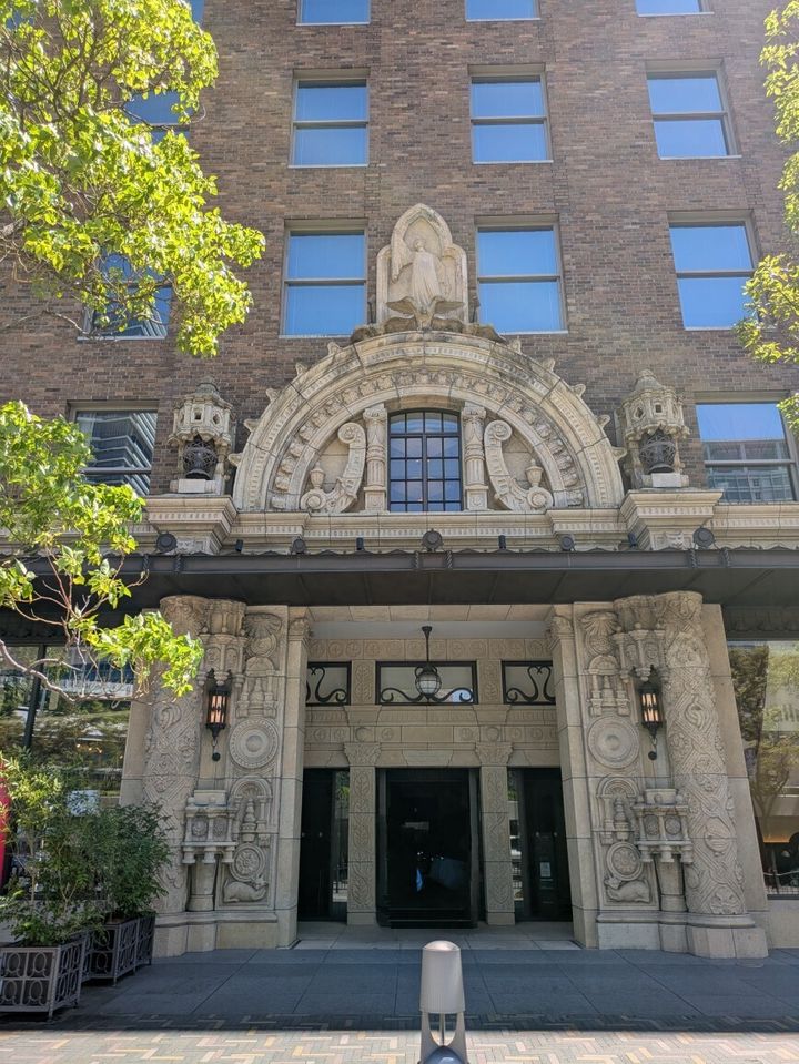 歴史的建造物と高層オフィスビルが融合しており、館内はレストランやカフェが入っています。