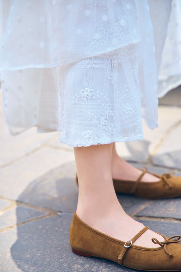 ピュアなコットンレースにドットチュールを重ねて。