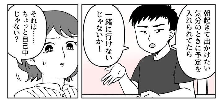 「そうじゃなくて、朝起きて俺が「出かけたい」って気分のときに、違う予定を入れられていたら、一緒に行けないじゃないか!」