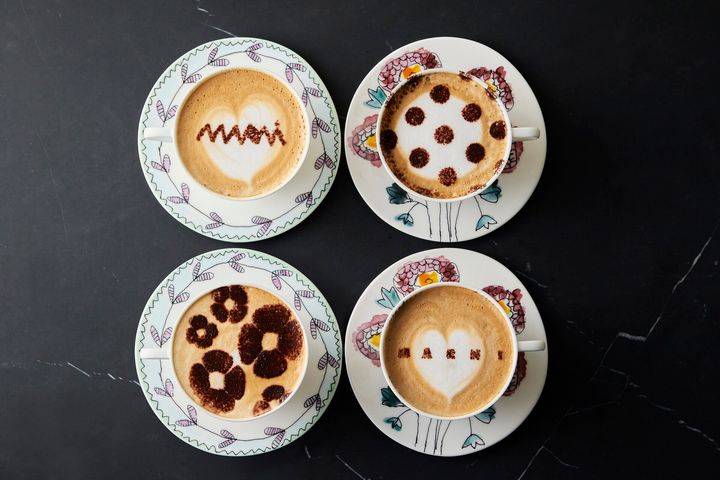 ドリンクメニューはマルニのDNAであるフラワーやドット、ロゴが表現されたカプチーノのほか、フレーバーティーやアルコールなど。マルニ カプチーノ 各¥1,650
