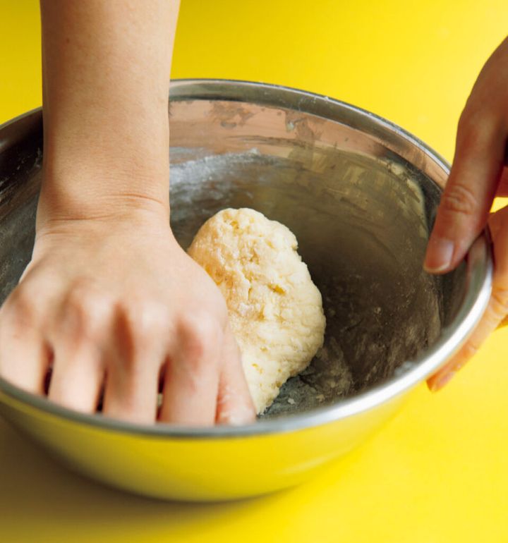 手について成形がしにくい場合は、ホットケーキミックス少量(分量外)を加えてから丸めて。鍋底にくっつきやすいので、油は多めに入れるのがコツ。