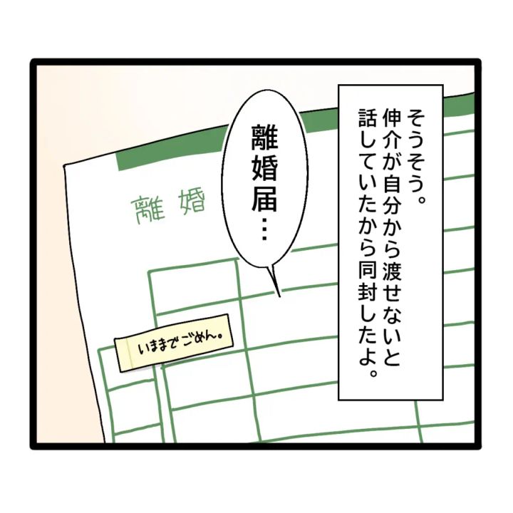 そして、「そうそう。伸介が『自分から渡せない』」と話していたから同封したよ」と離婚届が同封されていました。