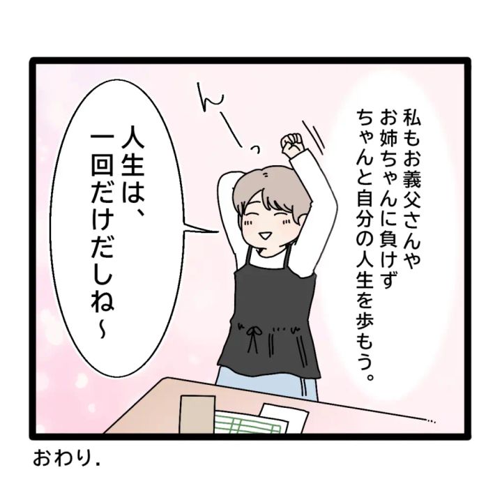 私もお義父さんや、お姉ちゃんに負けず、ちゃんと自分の人生を歩もう。そう心の中で誓った私は、