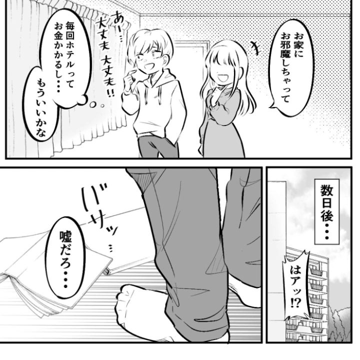 自業自得といえば、それまでの出来事ですが、まさかこんなことが起こると思ってなかった主人公。果たして通帳は本当に盗まれていたのか、ただの勘違い、自分の管理不足なだけだったのか・・・未だに真相は闇の中だそう(苦笑)。その場の軽いノリだったとはいえ、自宅に誘う人はしっかりと見極めたほうが良さそうです。