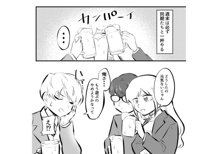 商社に勤めているアラサー男子のハル(28歳)。週末同期との飲み会で、最近女の子をお持ち帰りした話に。しかし、ハルはあることに悩んでいるようです・・・。