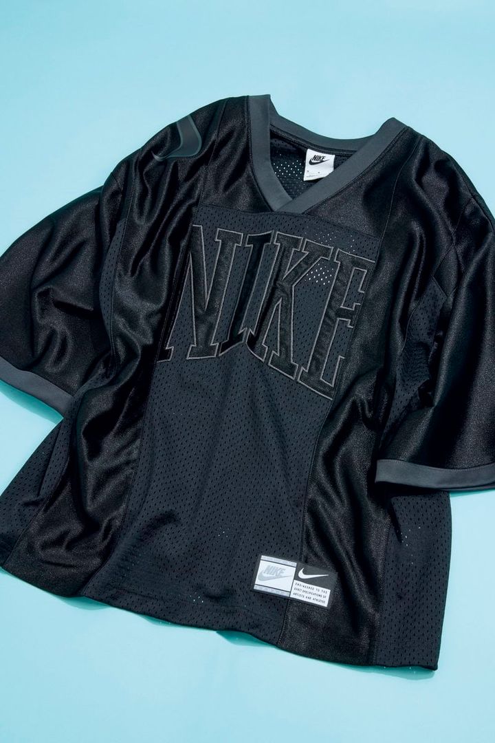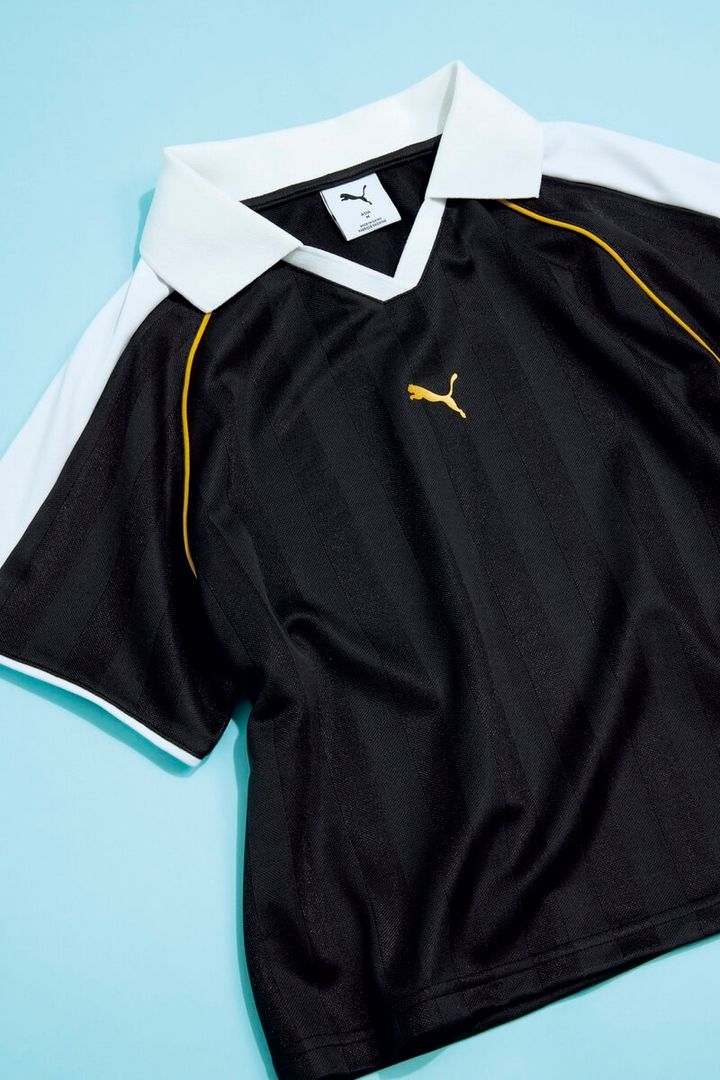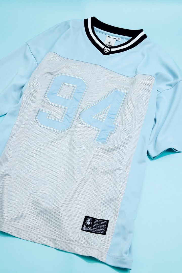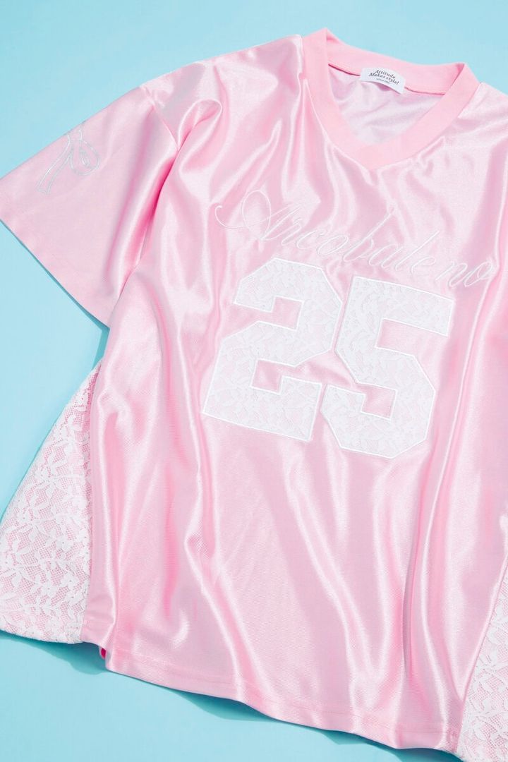 【上から】㉛メッシュとナイロン素材をドッキングさせたビッグサイズ。¥11,000/X-girl(X-girl store)、㉜ガチ感のある襟付きフットボールTシャツ。ミニスカなどプリッとしたボトムを合わせて。¥8, 800/プーマ(プーマ お客様サービス)、㉝サテン! ピンク! レース! ラブリーながらもスポーティ。¥4,389/スピンズ、㉞メリハリのあるカラーリングでおしゃれに昇華。¥7,370/アディダス オリジナルス(アディダスお客様窓口)