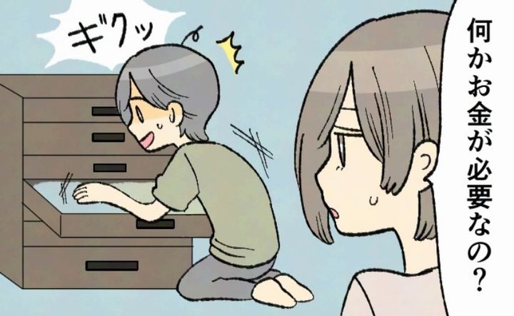 3. 現金を入れている棚を漁る夫。「お金…必要なの?」尋ねると、夫からまさかの告白が