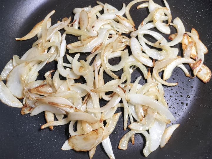 11. 3の玉ねぎを戻し入れ、全体に絡めます。