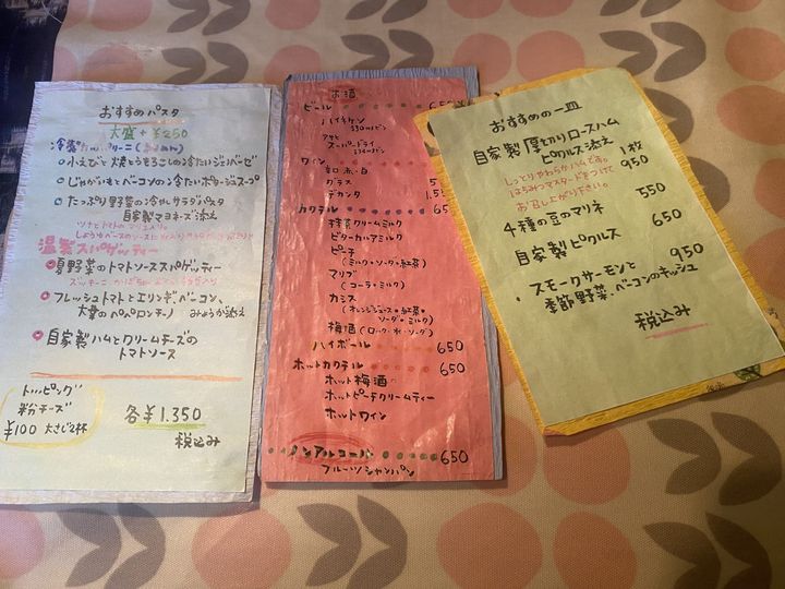 そして、手書きのメニューを見ると驚き!ずらりと並んだ豊富な種類のメニュー。ランチのパスタだけでも9種類。