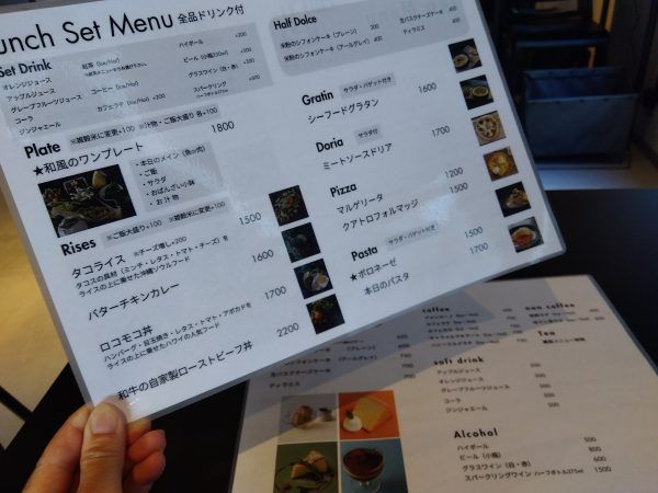 ランチセットメニュー、自家製デザートメニュー、ドリンクメニュー。