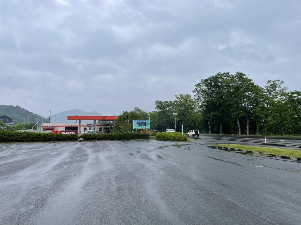 お隣はガソリンスタンドです。駐車場もたっぷり。それぞれ車で来ても大丈夫!! 駐車場に悩むことはありませんよ。