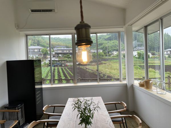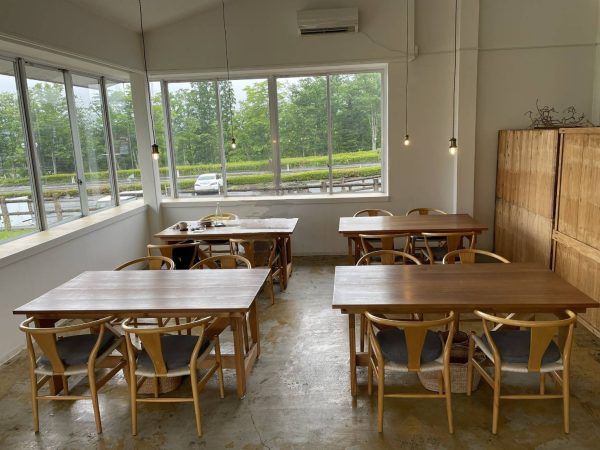 奥へ進んでみると、広々とした空間。このテーブル席がまた素敵! 大きな窓から見える景色は、畑や新緑がとっても綺麗。眼福です。