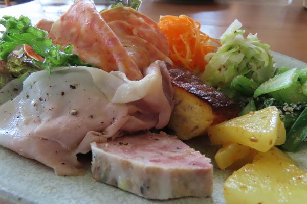 ランチには、すべて自家製シャルキュトリ(ハムなどの加工肉製品)と地元食材が楽しめる前菜の盛り合わせが付いています。 これがとっても豪華でデリシャスなんです。