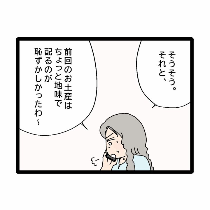 帰省の手土産にダメ出し。見栄え重視のお菓子を義実家以外に12箱。義実家帰省がイヤすぎる|ママ広場マンガ