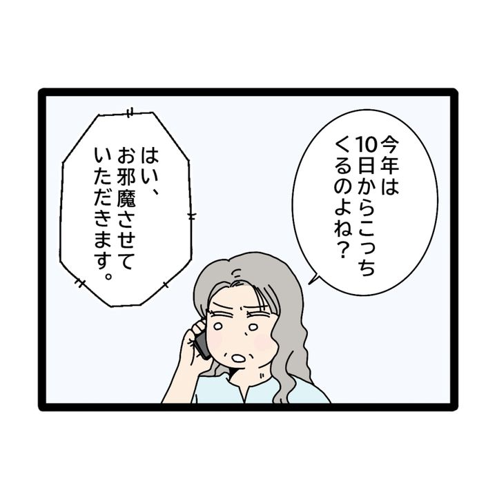 今年は10日からこっち来るのよね?予定を確認する義母に「はい、お邪魔させていただきます。」