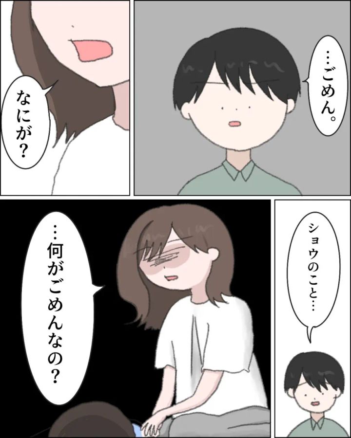 「・・ごめん」と一言。「なにが?」と聞き返すと、「ショウのこと・・」と口ごもりながら言うユウタに怒りが湧いてきて「・・何がごめんなの?」と詰め寄りました。