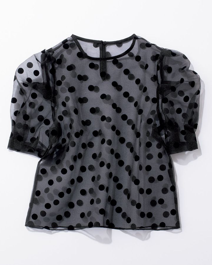 ④肌見せ初心者もトライしやすい「シアードットブラウス」