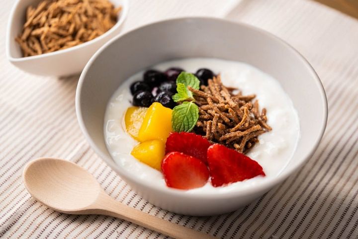 発酵性食物繊維たっぷりの小麦ブランのシリアル。朝食にはヨーグルトと合わせて食べるのがオススメ