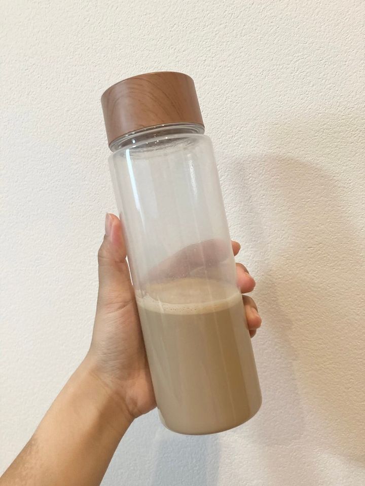 まるでカフェで提供されるようなロイヤルミルクティー風味。シェーカーは別売りで購入可能ですが、私は手持ちのボトルに水200mLを入れて代用。