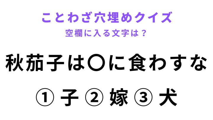 「秋茄子は〇に食わすな」の空欄に文字を入れると、あることわざが完成します。