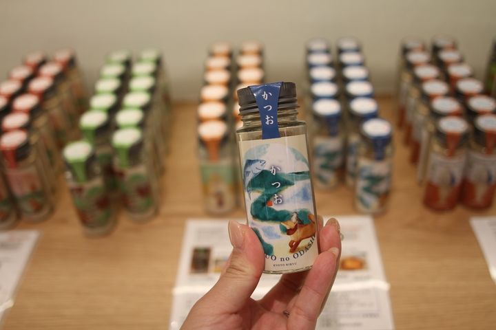 だしを手軽に楽しみたい方は、お味噌汁やお好み焼きなどにふりかけて食べるタイプの「整うおだしシリーズ」がおすすめ。味は、「離宮のおだし」950円、「かつお」864円、「昆布」864円、「しいたけ」864円、「やさいのおだし」972円の5種類。伏見にちなみキツネをモチーフにしたデザインも推しポイントのひとつ。キツネが京都の街を旅しているイメージで、とってもかわいいですよ!