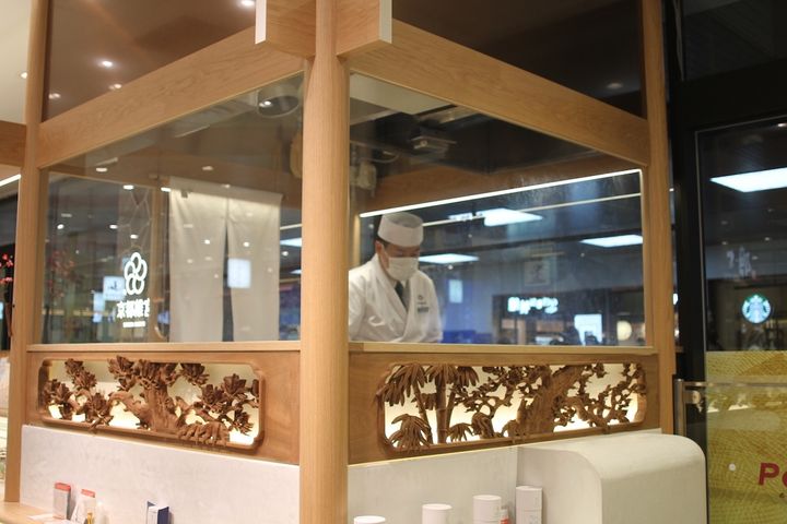 また、お店の外である南北自由通路には、「京都離宮」本店の石庭をだしの素材で再現しています。