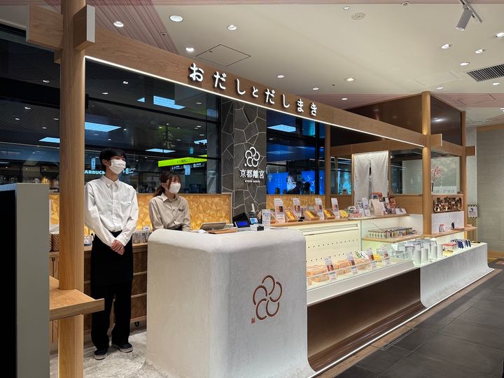 「京都離宮~おだしとだしまき~」(以下、「京都離宮」)京都駅店は、「おだしのテーマパーク」をコンセプトに2022年、京都市伏見区にオープンした「京都離宮」の2号店。JR京都駅西口2階の「京名菓・名菜処亰(みやこ)」内にあります。