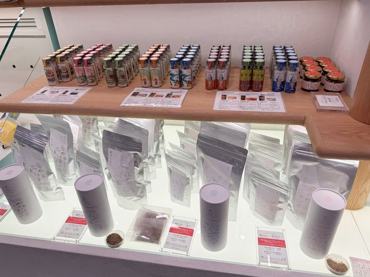 本店にはだしの歴史や素材、料理レシピ、調理器具などを紹介した展示がありましたが、京都駅店の商品棚にも、だし素材が展示されていました。手に取ってもよいそうなので、ぜひあわせてチェックしてみてくださいね。
